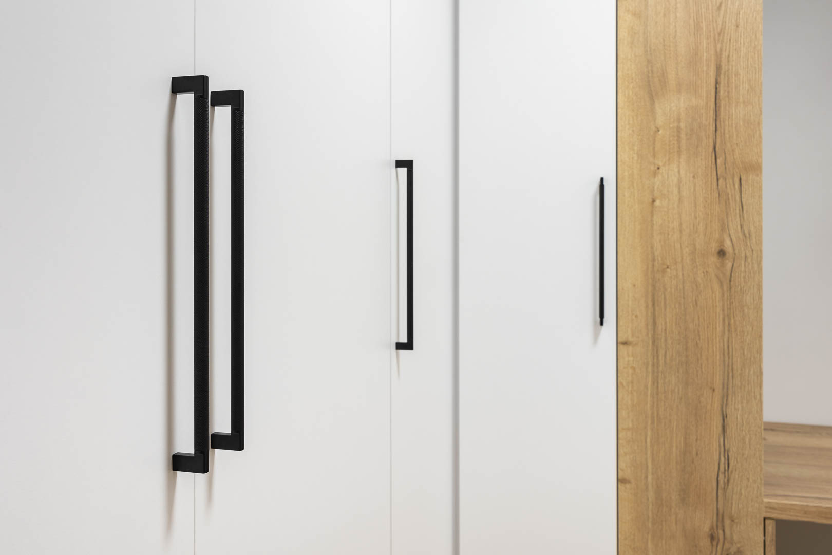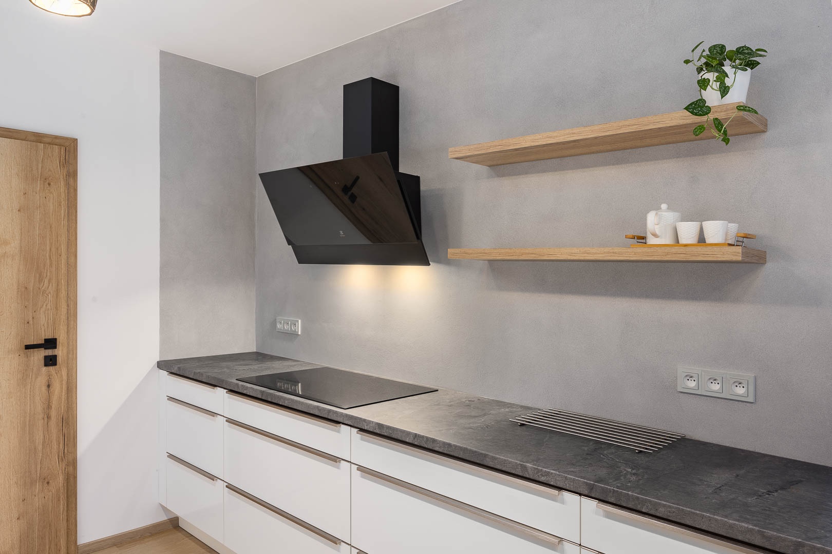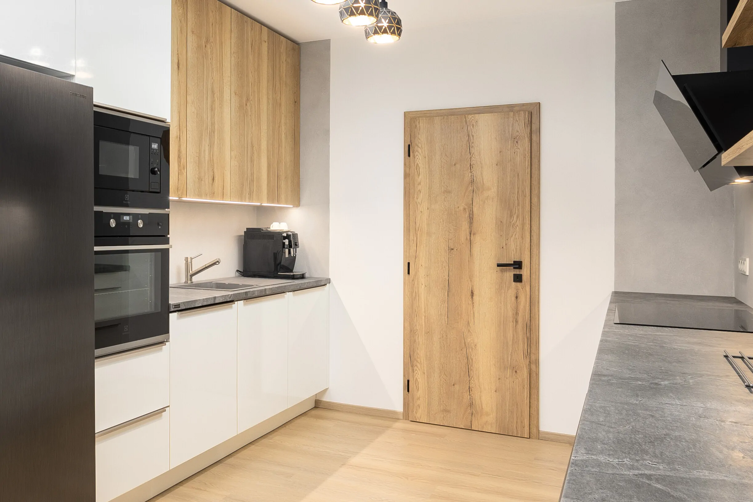 Gestaltung einer Küche mit praktischen Griffen in der Türkante.