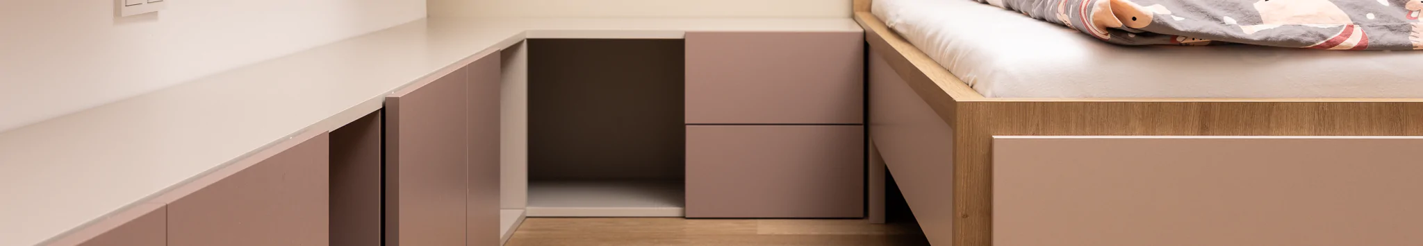 Designérka Iveta Nekužová: ,,Naší rolí bylo převést hotový návrh do kvalitní výroby tak, aby nábytek vydržel každodenní používání a zároveň se dal v budoucnu snadno přizpůsobit. Velký důraz jsme kladli na přesnost provedení, bezpečné hrany a kvalitní kování."