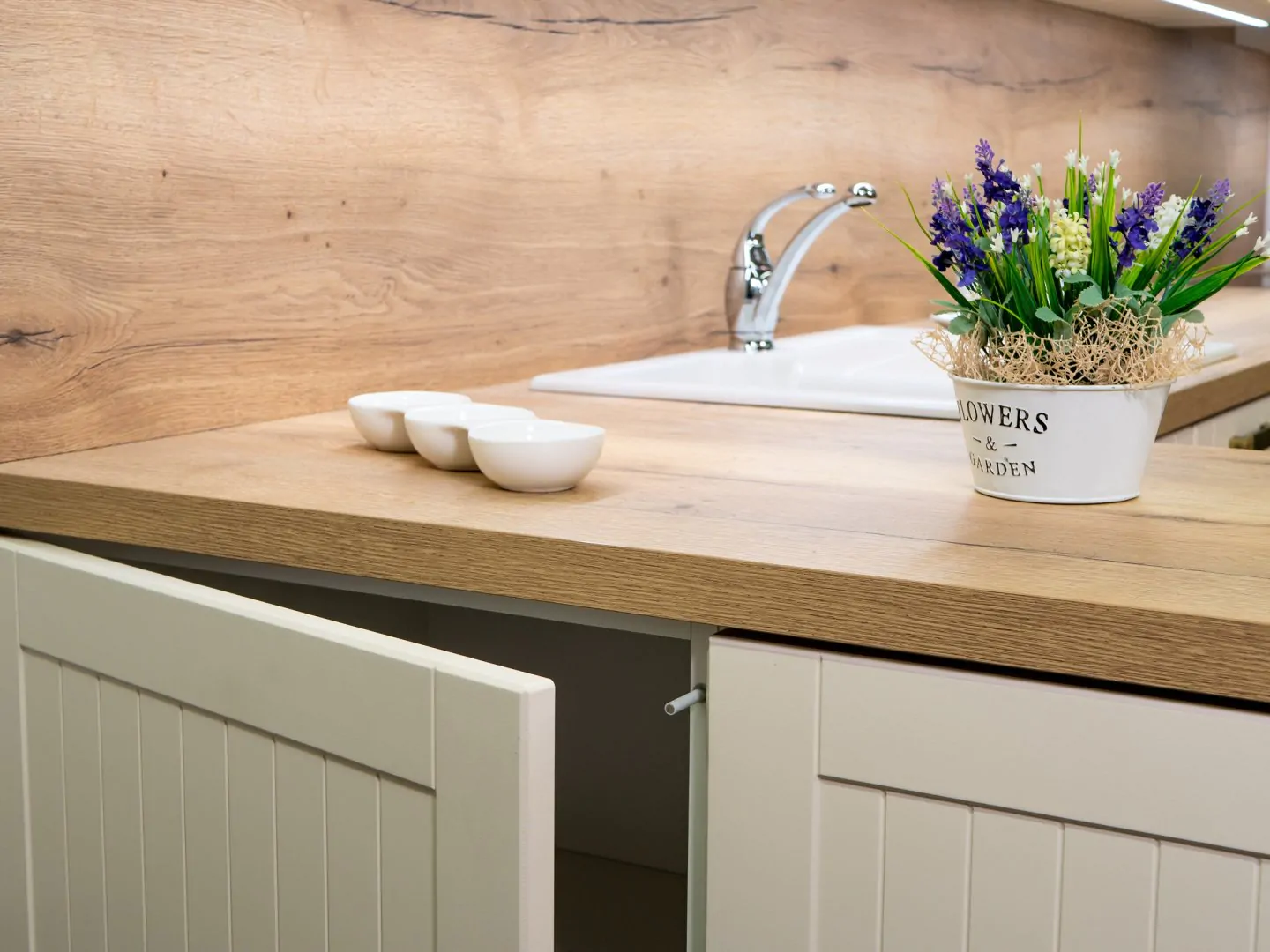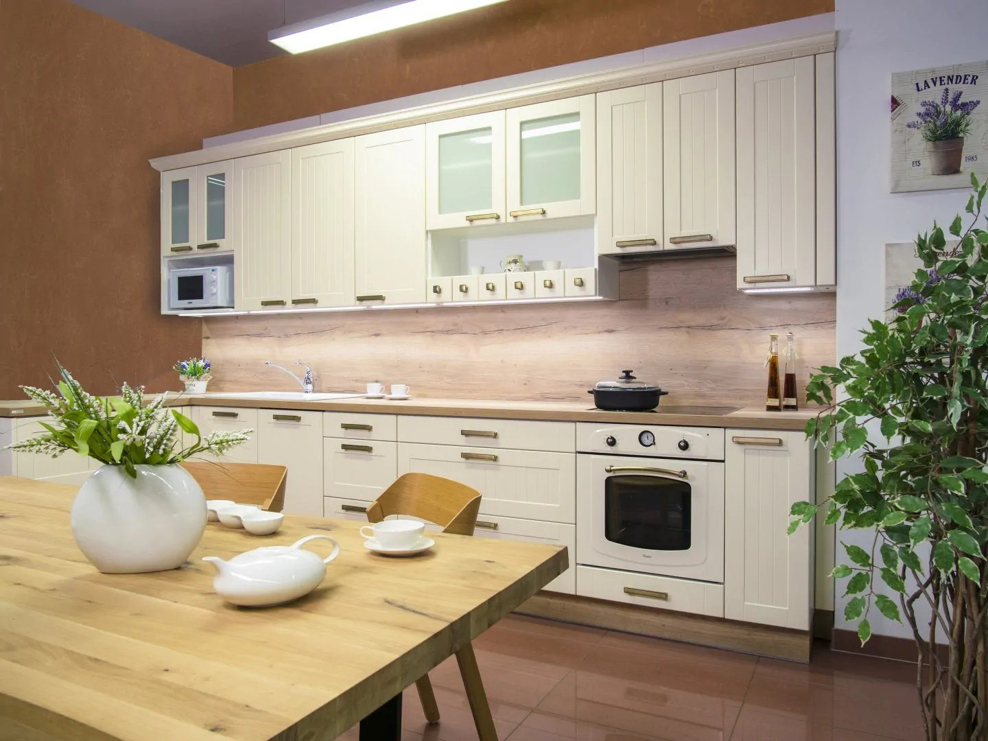 Jemnou, elegantní barevná paleta vnáší do prostoru klid a teplo. Kombinace přírodních odstínů a moderního designu vytváří harmonické prostředí, ideální pro relaxaci i každodenní vaření.