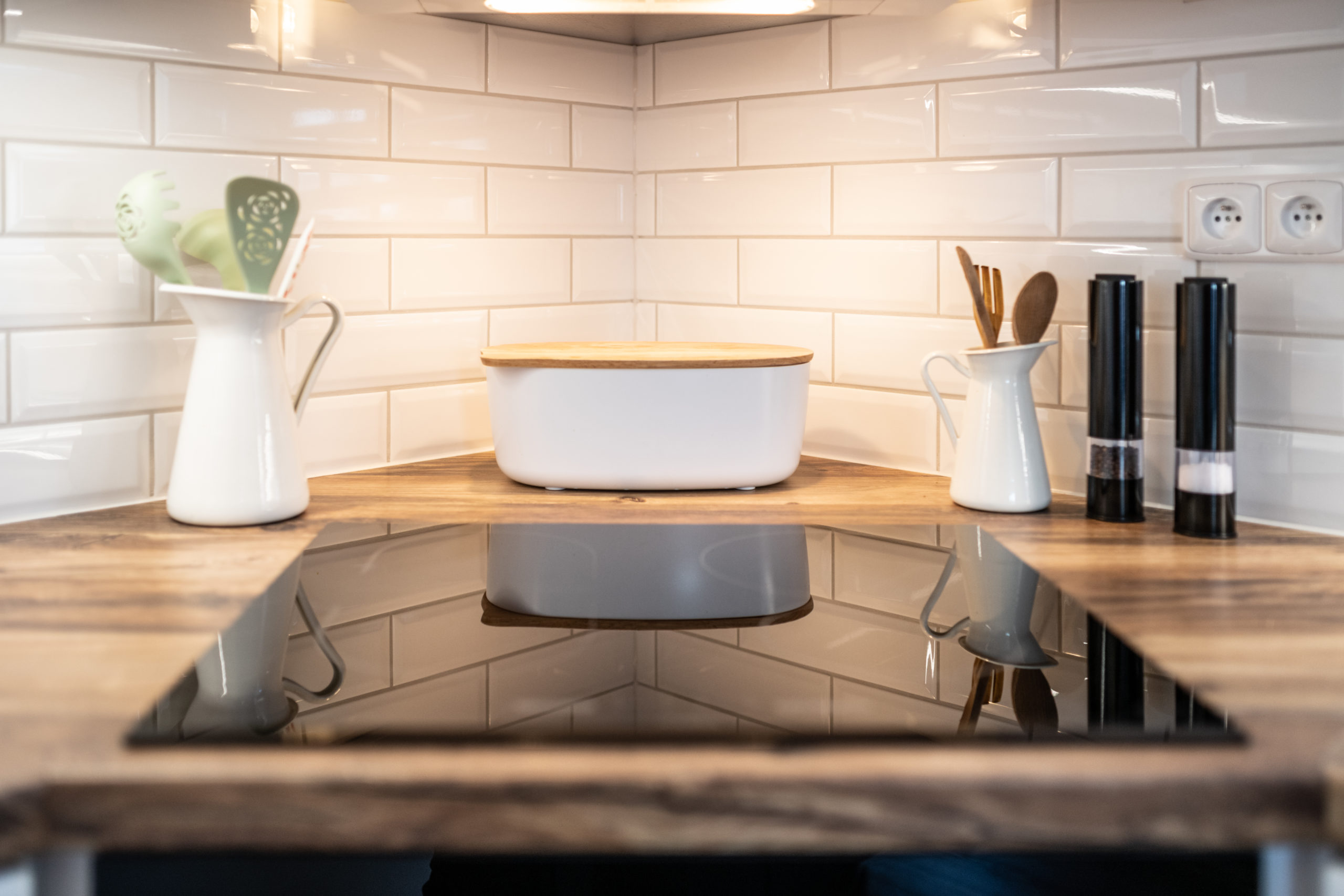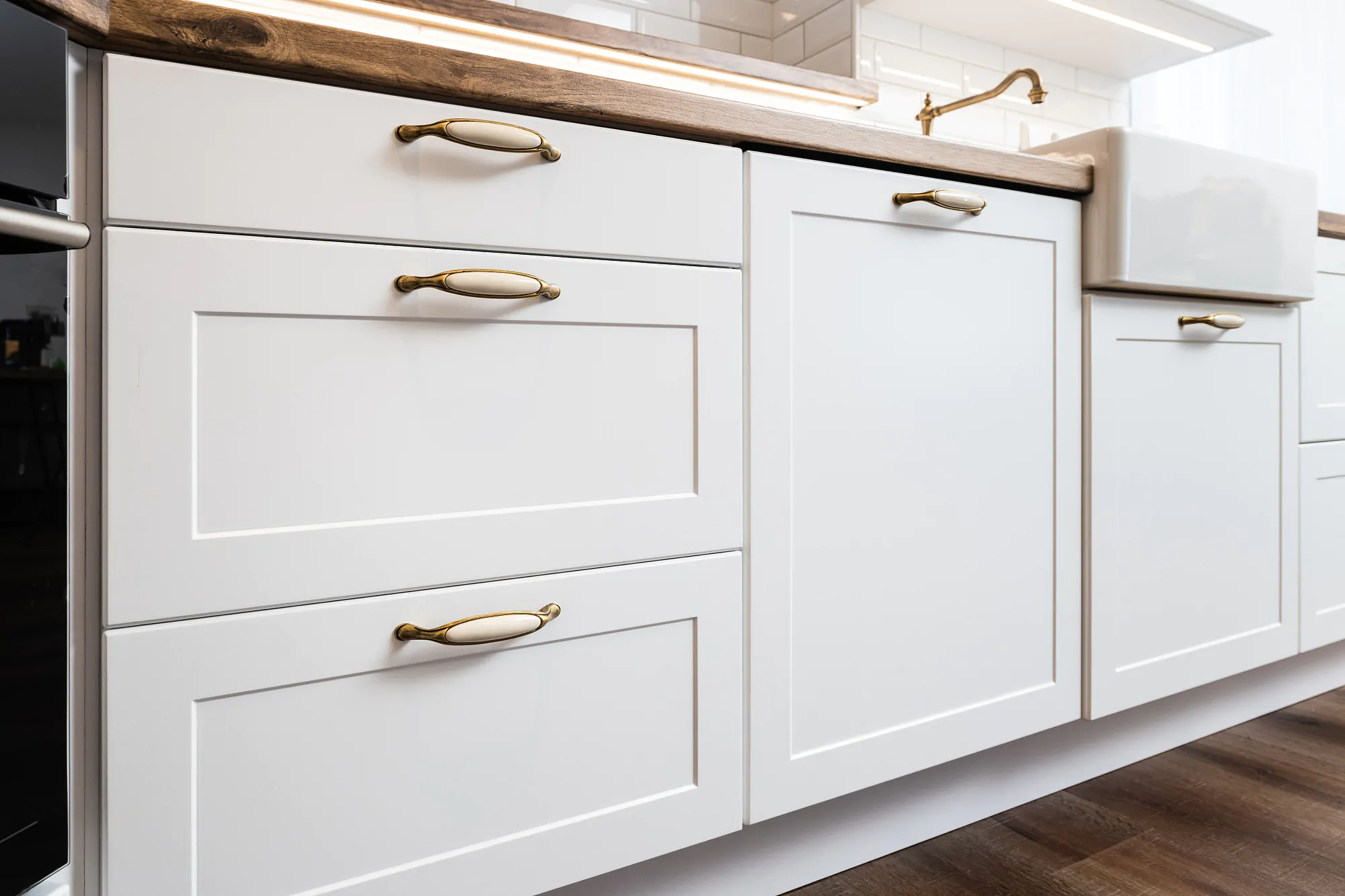 Zaujme svým rustikálním šarmem, kde bílá matná fólie a dubová pracovní deska vytvářejí útulnou atmosféru. Doplněná stylovými úchytkami a keramickým dřezem, tento prostor nabízí elegance s nádechem tradice.