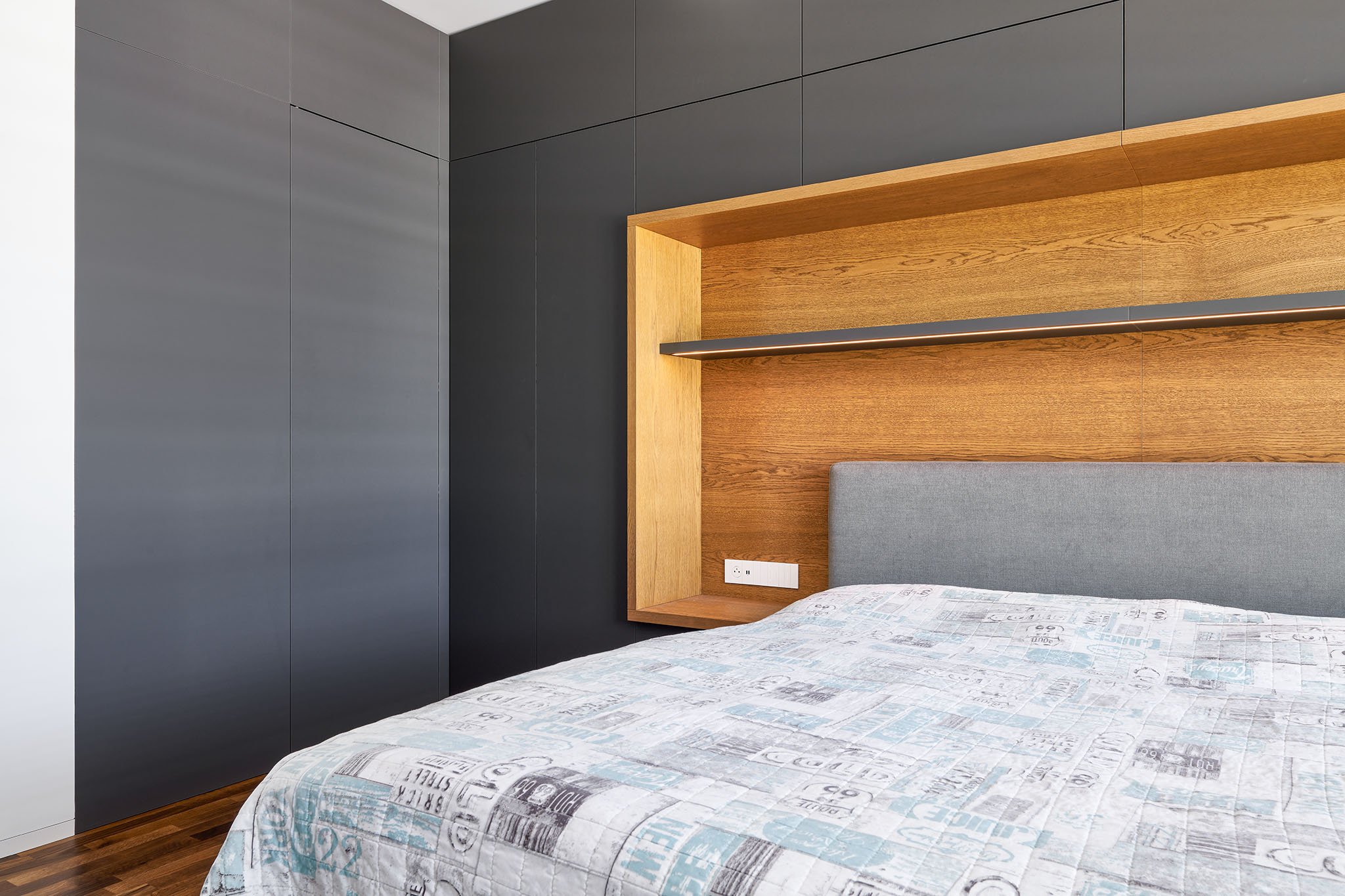 Jedna tmavá a druhá světlá, obě podle představ klienta – na míru interiéru i každodenním rutinám. Vše vyrobeno u nás v Ořechově pro našeho dlouholetého pražského partner INTERIÉRY VEGA. V každé místnosti jsou čisté linie, přesné lícování a ztišená paleta materiálů tak, aby prostor působil uvolněně a dlouhodobě nadčasově.