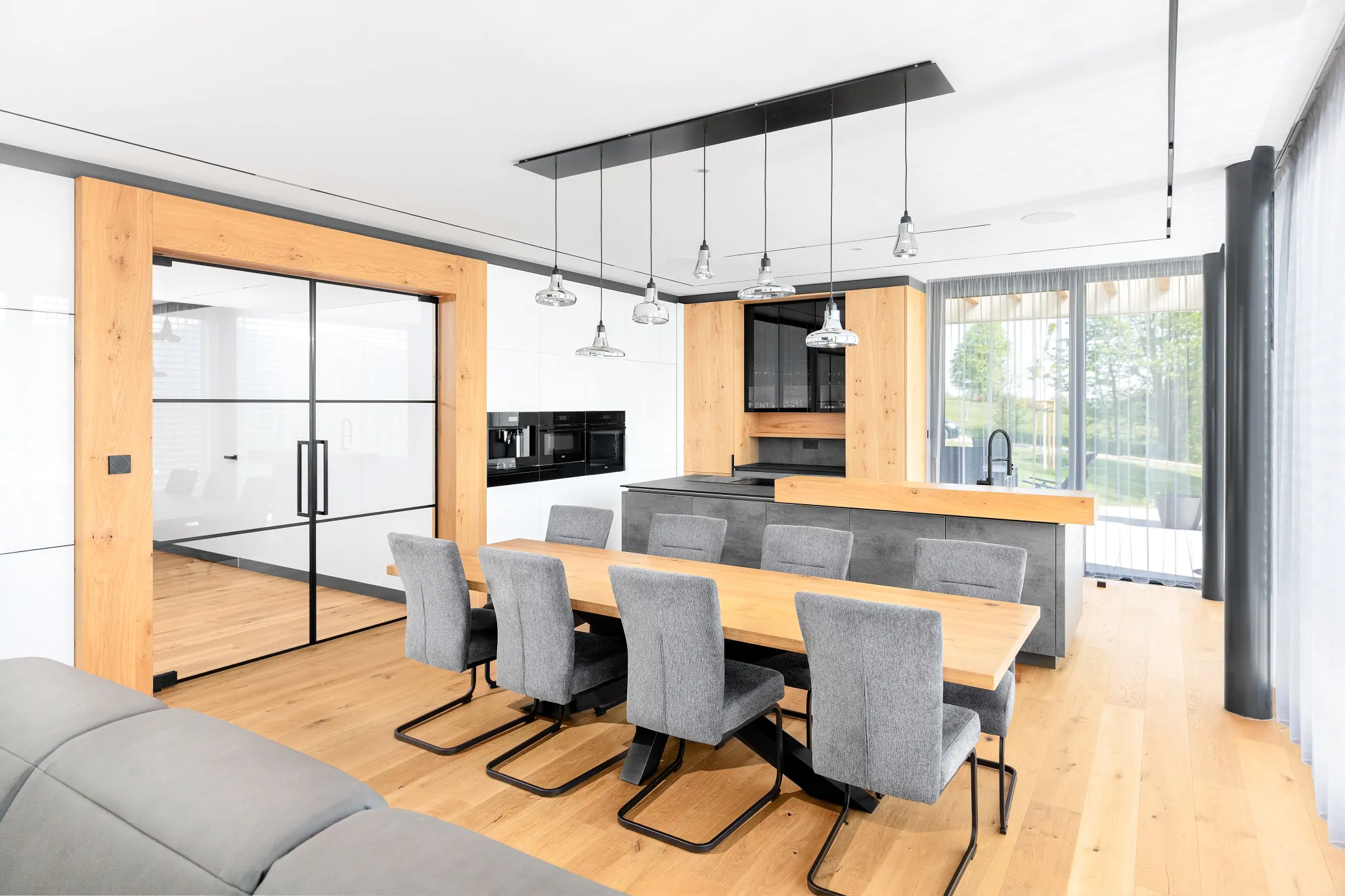 Naše jméno je na trhu již tři desetiletí a tato zkušenost je základním kamenem každého projektu, kterému se věnujeme. Není to jen číslo, ale tisíce hodin práce, stovky realizovaných interiérů a hluboká znalost materiálů a technologií, která nám umožňuje nacházet ta nejlepší a nejtrvanlivější řešení. Veškerý nábytek vzniká pod našima rukama v naší vlastní výrobní dílně. To nám dává absolutní kontrolu nad každým detailem – od výběru dřeva až po finální povrchovou úpravu. Díky tomu vám můžeme garantovat nejen precizní zpracování, ale i dlouhou životnost a nadčasovou hodnotu našich produktů.