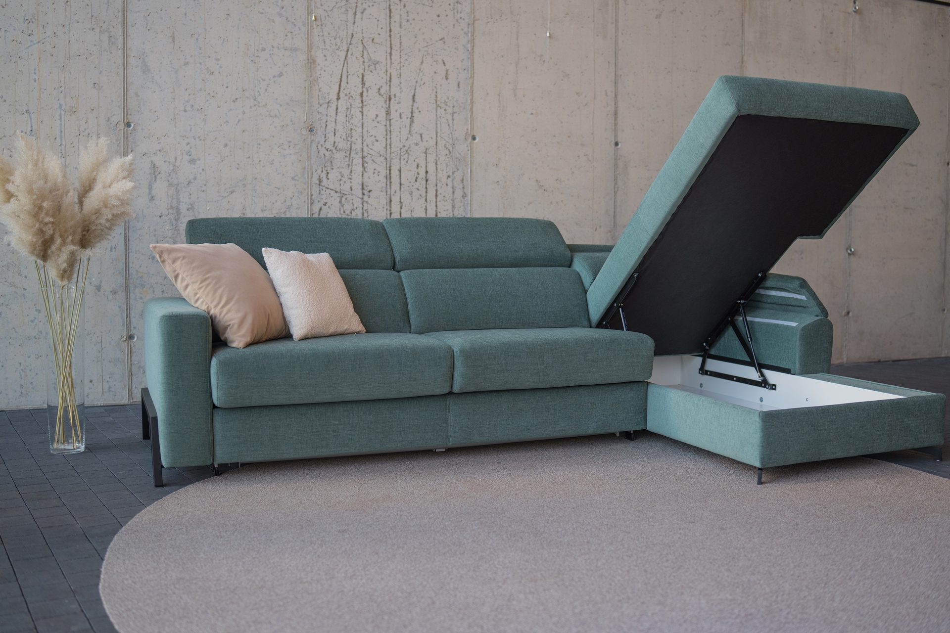 Od zaoblených opěrek až po elegantní křivky sedáků – každý prvek je navržený tak, aby poskytoval estetické i funkční výhody. Opěrky rukou je možné vybrat s anebo bez rámu. Nechybí ani funkce nastavitelných opěrek hlavy. Sedačku je možné doplnit také o elektrický vysouvací sedák a USB konektor. Samozřejmostí je velké množství potahových materiálů a modulů k přizpůsobení na míru.
